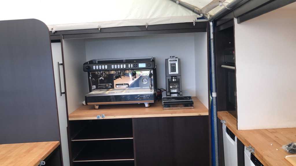 wurde mit einer Faema President ausgestattet. Eine wunderschöne Espressomaschine, die zeitlos ins Design passt.