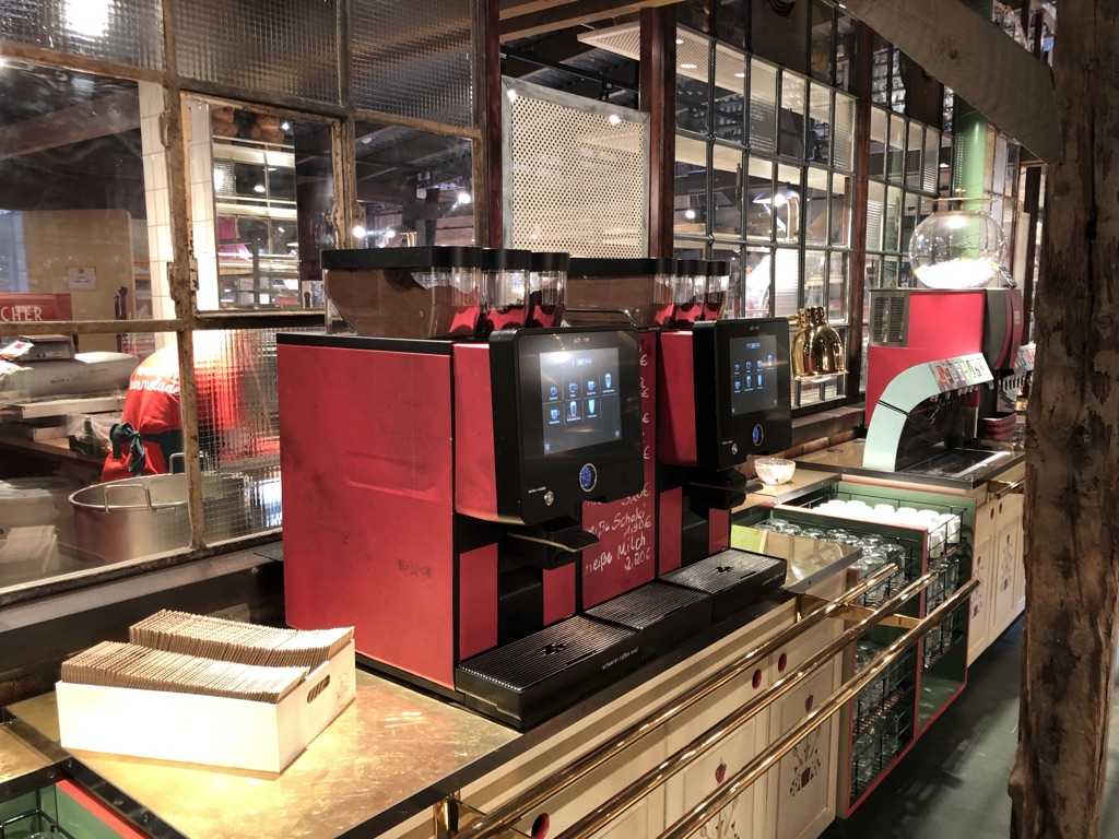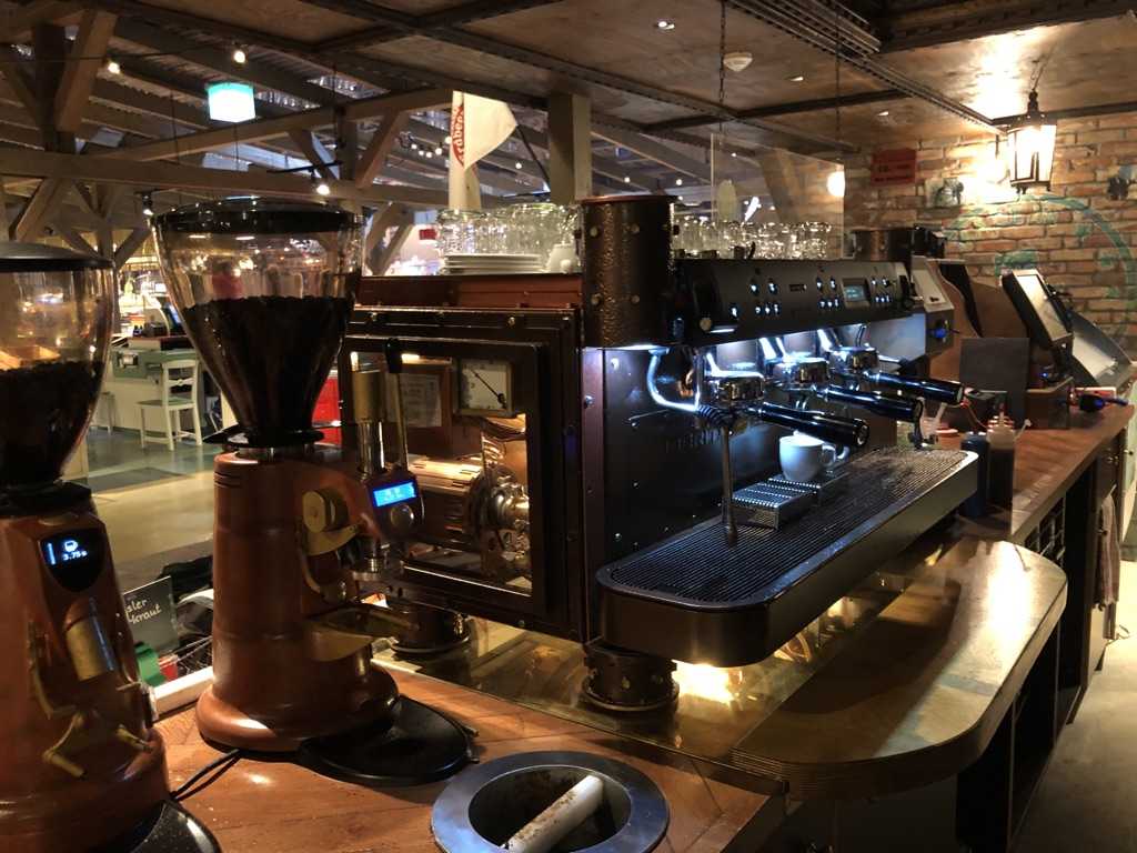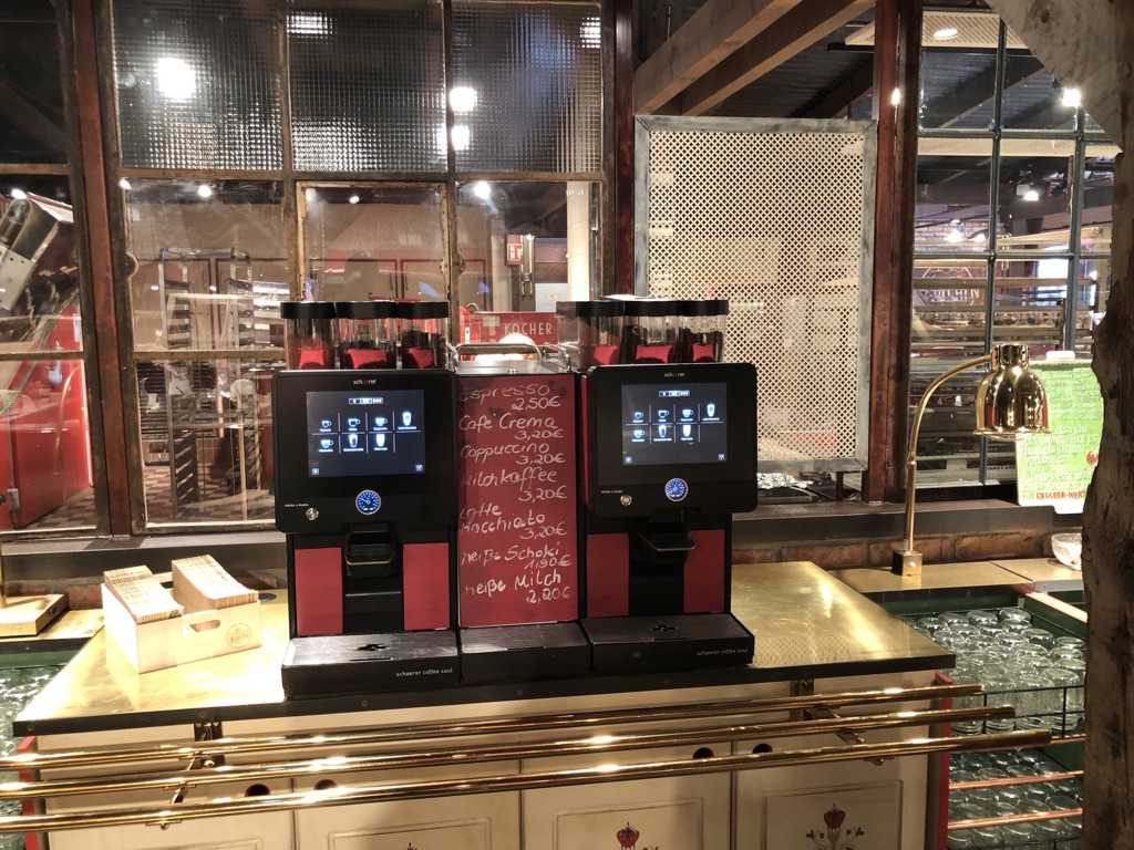 Karls in Berlin hat seinen Markt wieder erneuert. Auch eine schicke Kaffeebar mit Siebträger (es wurde eine Maschine total umgebaut) ist vorhanden.