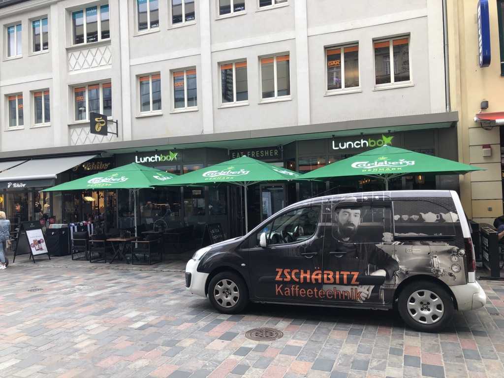 Die Lunchbox in Rostock hat sich vergrößert. Neben dem Geschäft im Hugendubel jetzt gleich vorne beim Kröpi Tor. Ein zwei-gruppiger Siebträger mit zwei Direktmahlern.